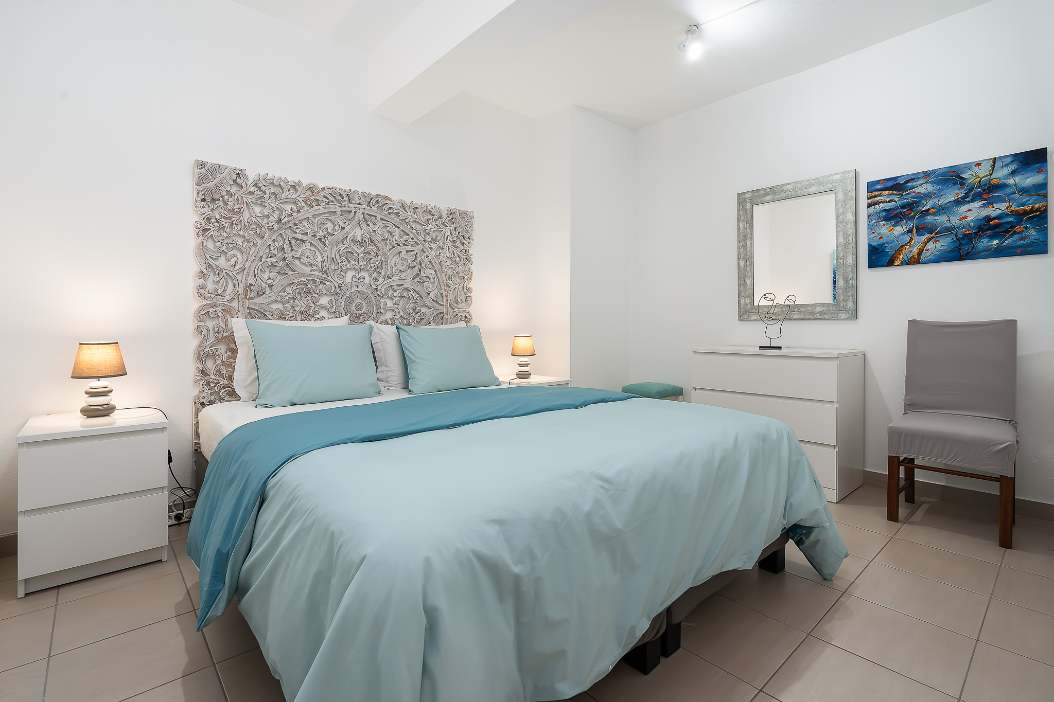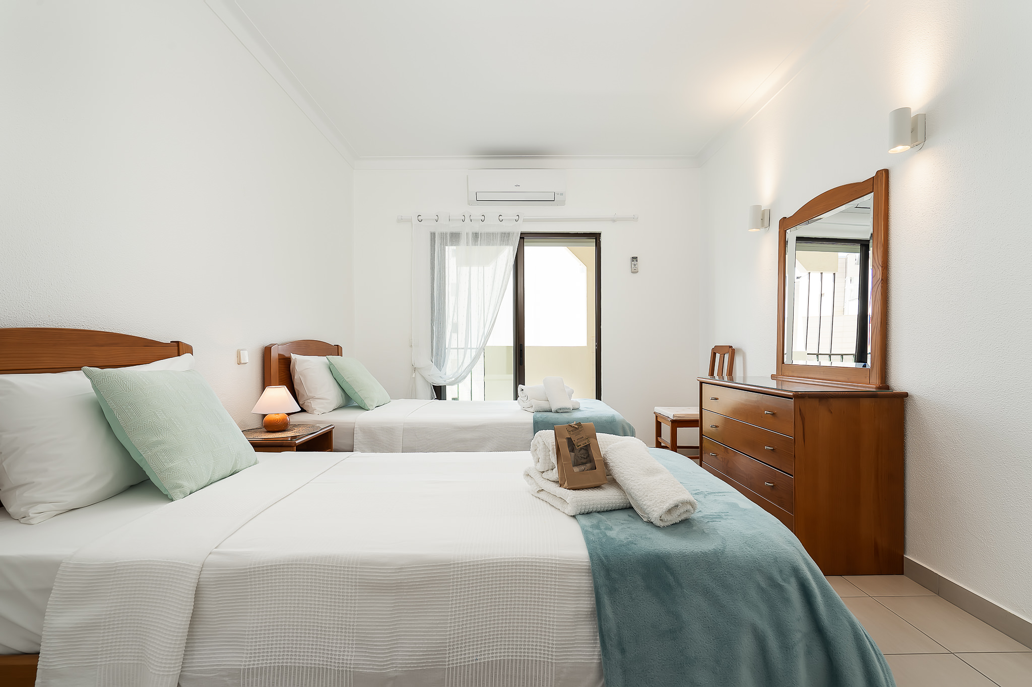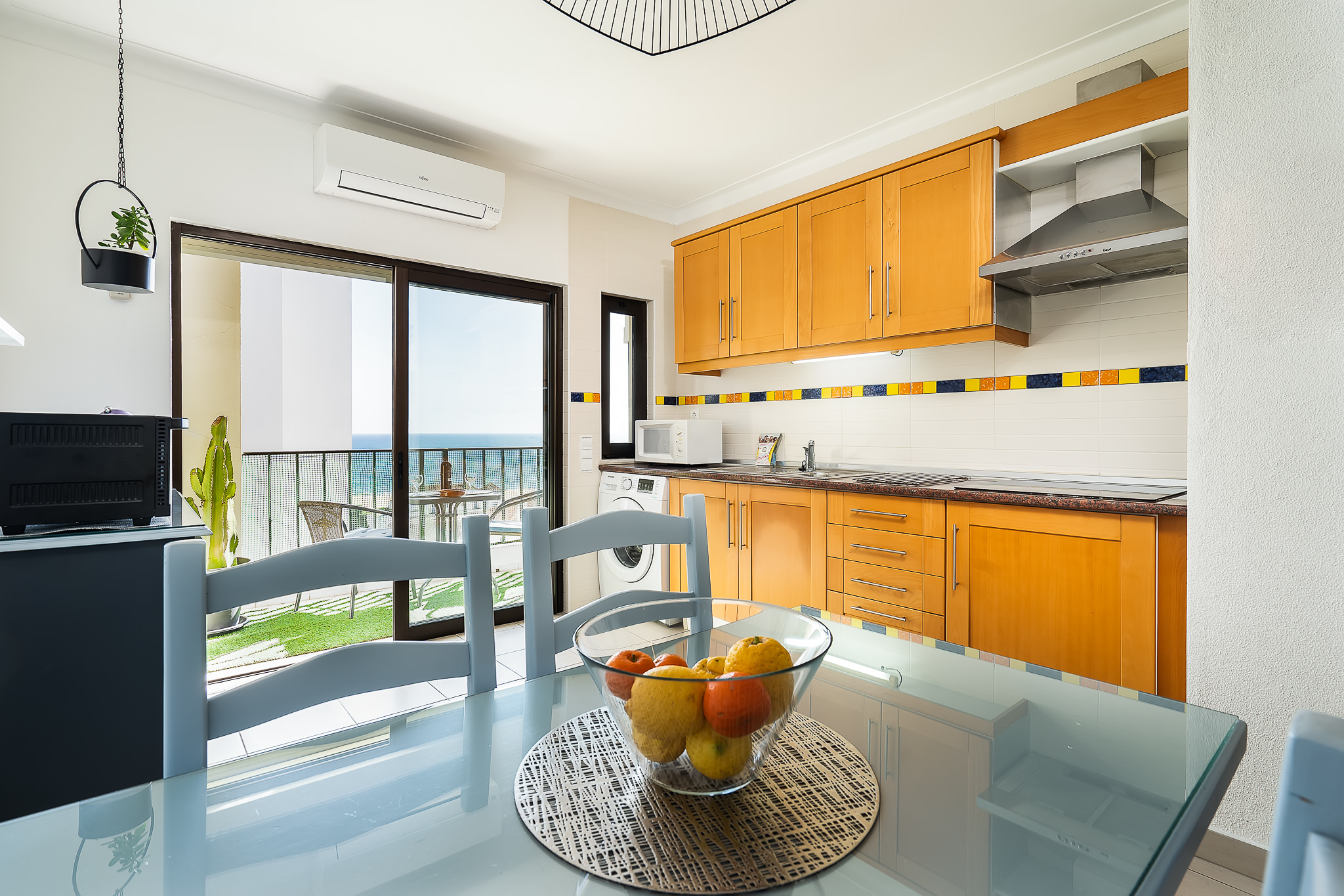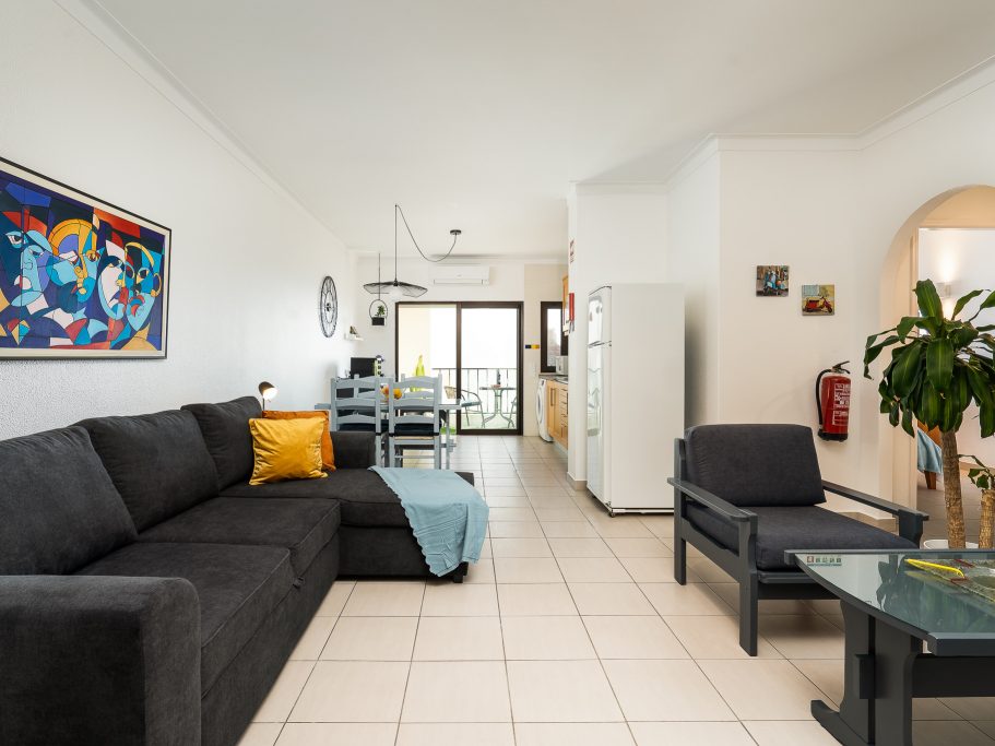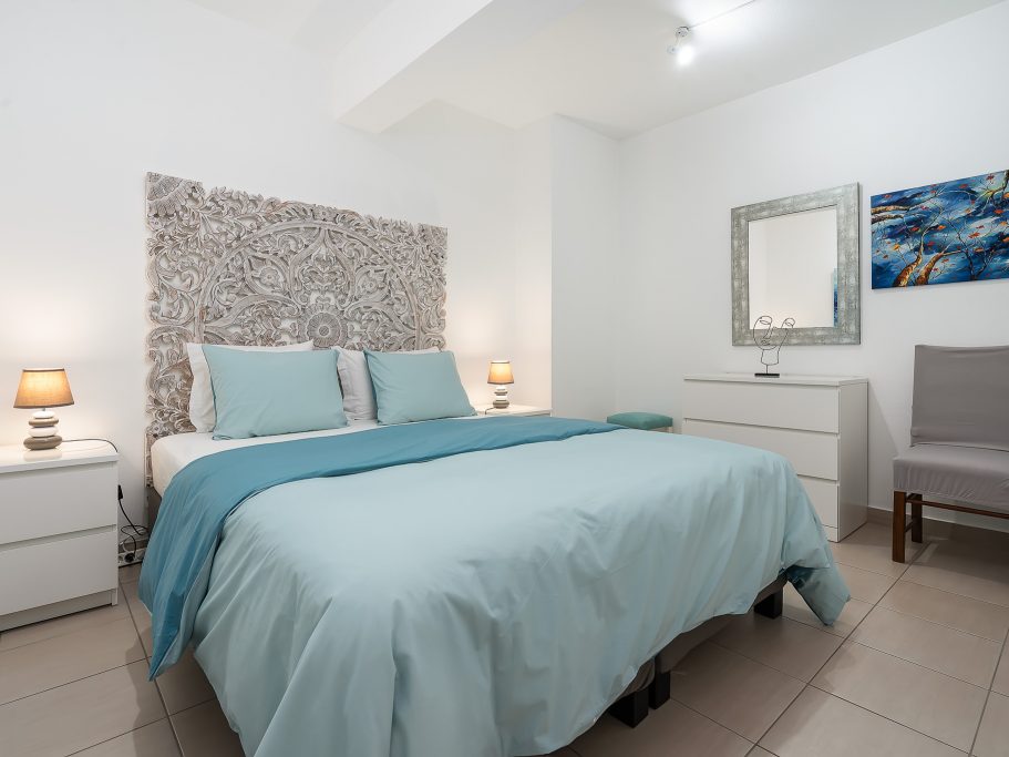 Terra es un maravilloso y funcional apartamento de 75m2, ideal para familias o grupos de amigos, que hospeda hasta 5 personas. Cuenta con dos dormitorios dobles, uno de dos camas individuales y otro con cama de matrimonio. Dispone de un baño completo con ducha y un gran salón con un cómodo sofá cama. Tiene una terraza que da mucha luz al apartamento y que permite disfrutar de las vistas al mar.